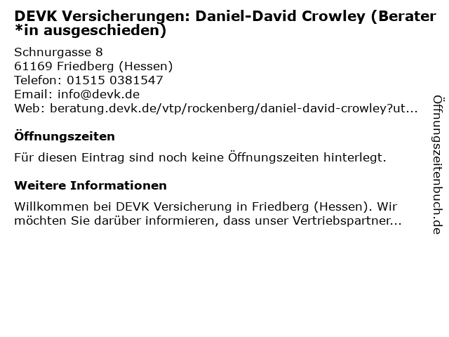 | DEVK Versicherungen: Daniel-David Crowley (Berater*in ausgeschieden) anrufen | |