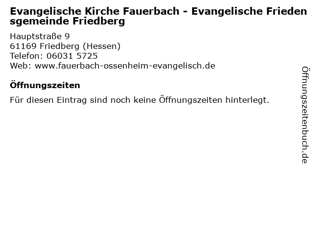 | Evangelische Kirche Fauerbach - Evangelische Friedensgemeinde Friedberg anrufen | |