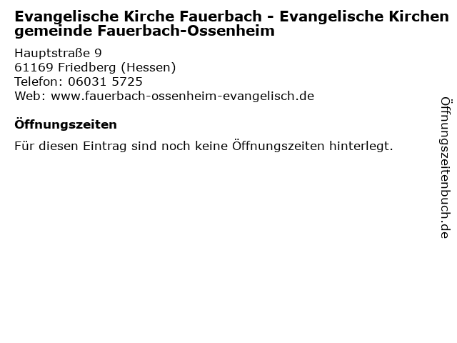 | Evangelische Kirche Fauerbach - Evangelische Kirchengemeinde Fauerbach-Ossenheim anrufen | |