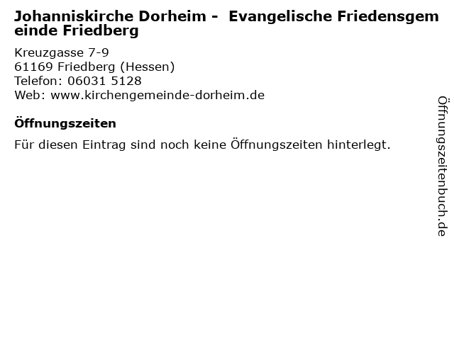 | Johanniskirche Dorheim - Evangelische Friedensgemeinde Friedberg anrufen | |