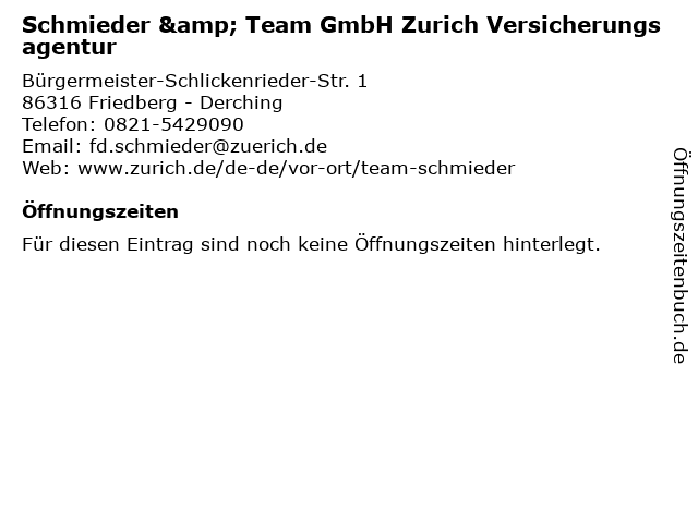 | Schmieder & Team GmbH Zurich Versicherungsagentur anrufen | |
