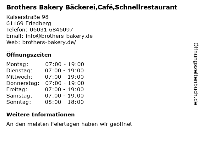 Branchen & Suchbegriffe zu Brothers Bakery Bäckerei,Café,Schnellrestaurant:backwaren, bakery, brot, brote, brothers, brötchen, bäckerei, cafe, café, essen, schnellrestaurant |