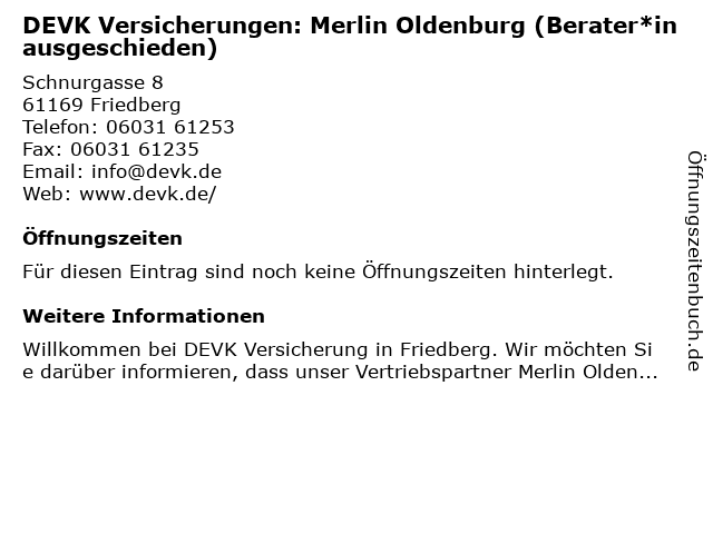 | DEVK Versicherungen: Merlin Oldenburg (Berater*in ausgeschieden) anrufen | |