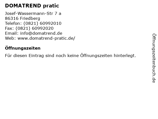Öffnungszeiten DOMATREND pratic in Friedberg anzeigen
