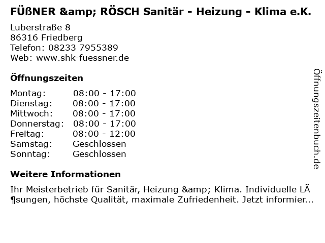Branchen & Suchbegriffe zu FÜßNER & RÖSCH Sanitär - Heizung - Klima e.K.:badumbau, e.k., füßner, heizung, klima, klimaanlagenmontage, rösch, sanitär |