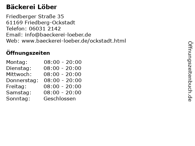 | Öffnungszeiten Bäckerei Löber in Friedberg-Ockstadt anzeigen | |