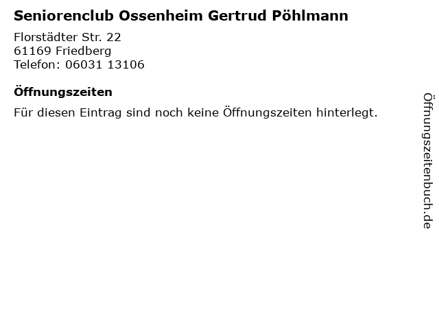 | Seniorenclub Ossenheim Gertrud Pöhlmann anrufen | |
