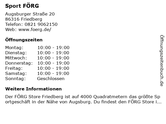 | Öffnungszeiten Sport FÖRG in Friedberg anzeigen | |