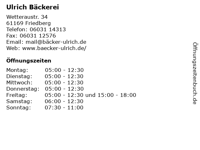 | Öffnungszeiten Ulrich Bäckerei in Friedberg anzeigen | |