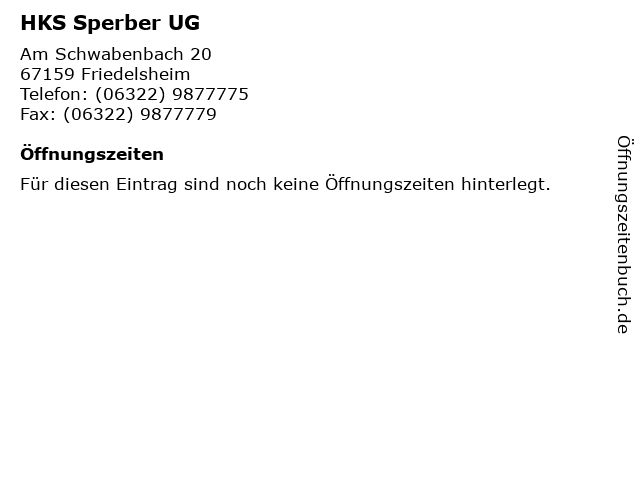 | Öffnungszeiten HKS Sperber UG in Friedelsheim anzeigen | |
