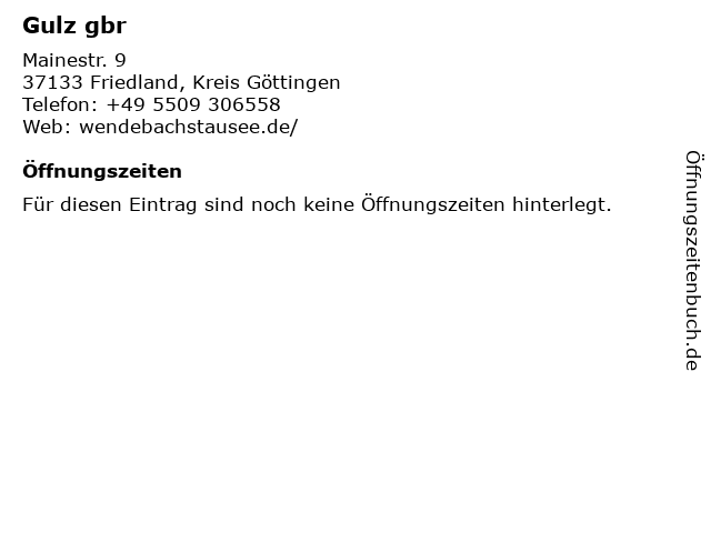 | Öffnungszeiten Gulz gbr in Friedland, Kreis Göttingen anzeigen | |