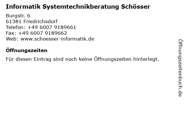| Informatik Systemtechnikberatung Schösser anrufen | |
