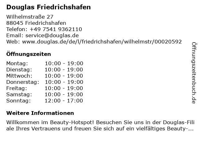 Branchen & Suchbegriffe zu Douglas Friedrichshafen:beratung, douglas, douglas friedrichshafen, gesichtspflege, haarpflege, kosmetik, kosmetikgeschäft, körperpflege, make-up, naturkosmetik, parfum, parfümerie |