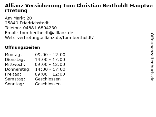 Branchen & Suchbegriffe zu Allianz Versicherung Tom Christian Bertholdt Hauptvertretung:allianz, altersvorsorge, autoversicherung, bertholdt, berufshaftpflichtversicherung, berufsunfähigkeitsversicherung, christian, gebäude- und hausratsversicherung, gewerbeversicherung, hauptvertretung, lebensversicherung, pflegeversicherung, tom, versicherung |