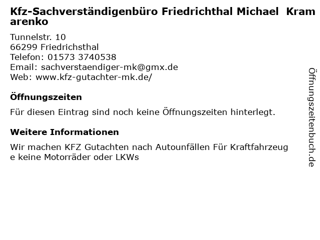 | Kfz-Sachverständigenbüro Friedrichthal Michael Kramarenko anrufen | |
