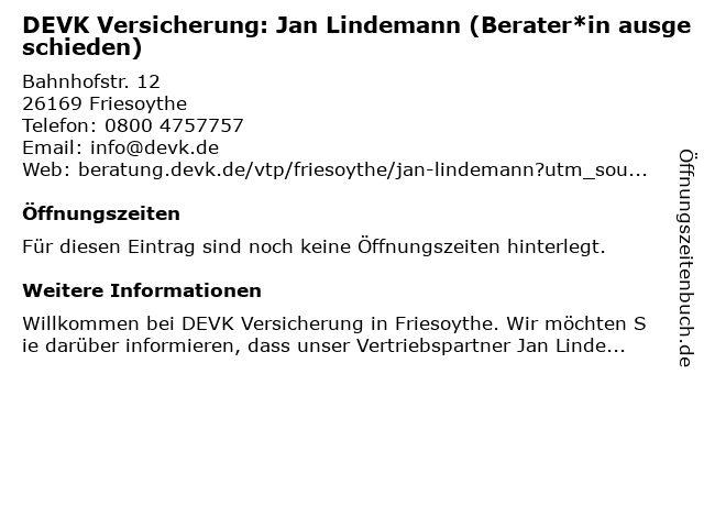 DEVK Versicherung: Jan Lindemann (Berater*in ausgeschieden) anrufen | |