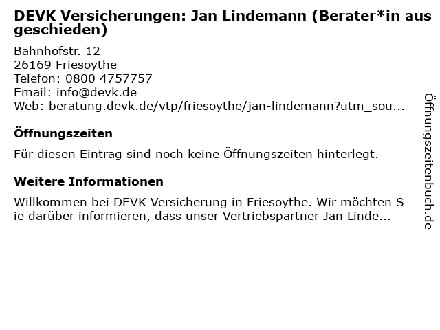 | DEVK Versicherungen: Jan Lindemann (Berater*in ausgeschieden) anrufen | |