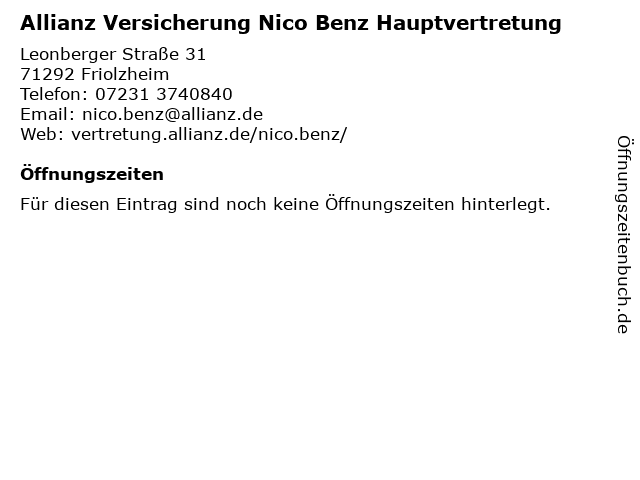 | Allianz Versicherung Nico Benz Hauptvertretung anrufen | |