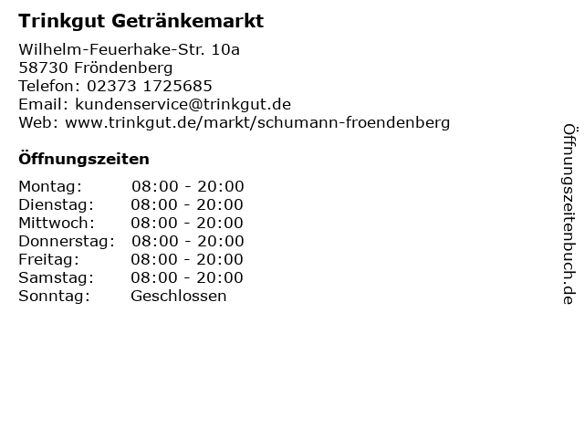 | Öffnungszeiten Trinkgut Getränkemarkt in Fröndenberg anzeigen | |