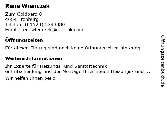 | Öffnungszeiten Rene Wienczek in Frohburg anzeigen | |