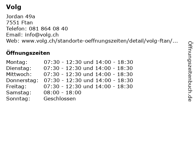 | Öffnungszeiten Volg in Ftan anzeigen | |