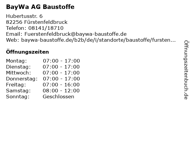 | Öffnungszeiten BayWa AG Baustoffe in Fürstenfeldbruck anzeigen | |