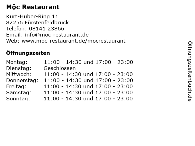 | Öffnungszeiten Mộc Restaurant in Fürstenfeldbruck anzeigen | |