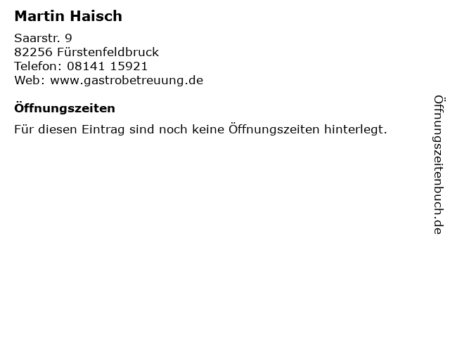 | Öffnungszeiten Martin Haisch in Fürstenfeldbruck anzeigen | |