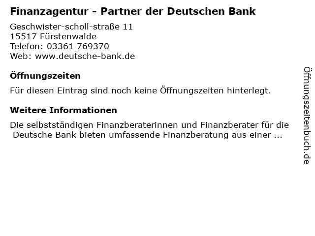 | Finanzagentur - Partner der Deutschen Bank anrufen | |