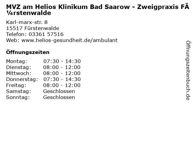 Branchen & Suchbegriffe zu MVZ am Helios Klinikum Bad Saarow - Zweigpraxis Fürstenwalde:bad, helios, klinikum, mvz, saarow, zweigpraxis |