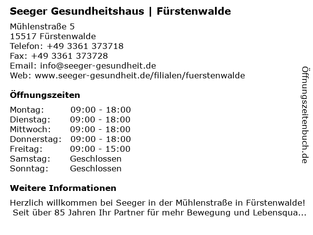 1 Doreen Libera Handelsvertreterin für Medizinprodukte (Entfernung: 7,03 km) Ahornallee 24 A, 15526 Bad Saarow 5 Seeger Gesundheitshaus GmbH & Co. KG (Entfernung: 29,13 km) Müllroser Chaussee 7, 15236 Frankfurt (Oder) 6 |