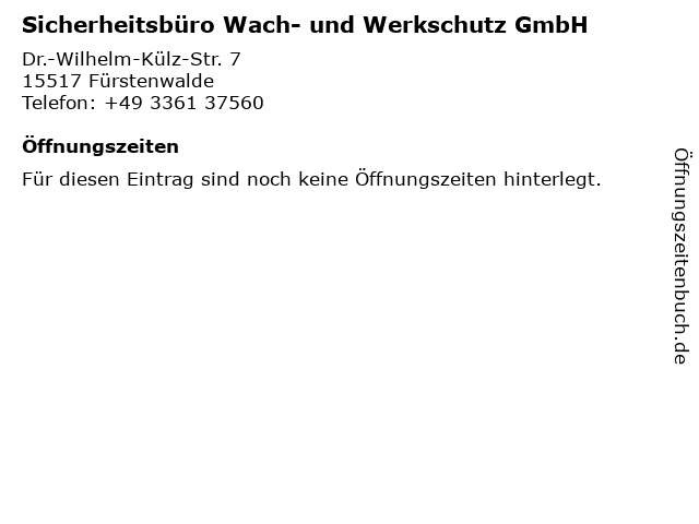 | Sicherheitsbüro Wach- und Werkschutz GmbH anrufen | |