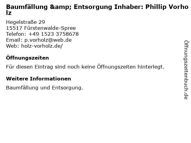 | Baumfällung & Entsorgung Inhaber: Phillip Vorholz anrufen | |