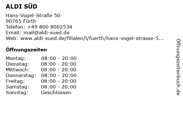 ALDI SÜD in Fürth: Telefonnummer, Öffnungszeiten und Adresse