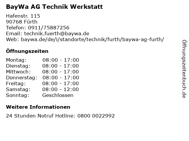 | Öffnungszeiten BayWa AG Technik Werkstatt in Fürth anzeigen | |
