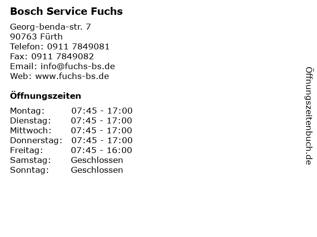 | Öffnungszeiten Bosch Service Fuchs in Fürth anzeigen | |
