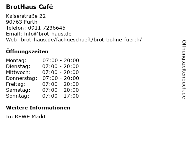 | Öffnungszeiten BrotHaus Café in Fürth anzeigen | |