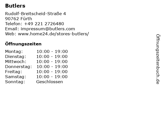 | Telefonnummer Butlers in Fürth (+49 221 2726480) anrufen | |