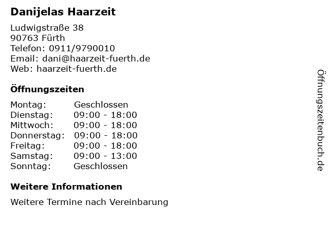 | Adresse Danijelas Haarzeit in Fürth anzeigen |