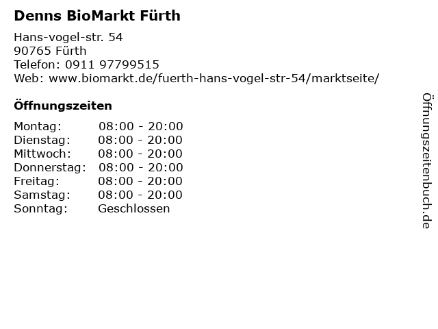 | Öffnungszeiten Denns BioMarkt Fürth in Fürth anzeigen | |