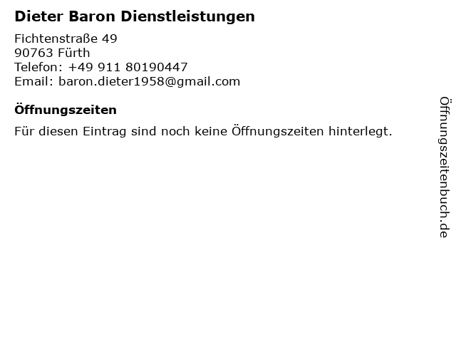 | Öffnungszeiten Dieter Baron Dienstleistungen in Fürth anzeigen | |