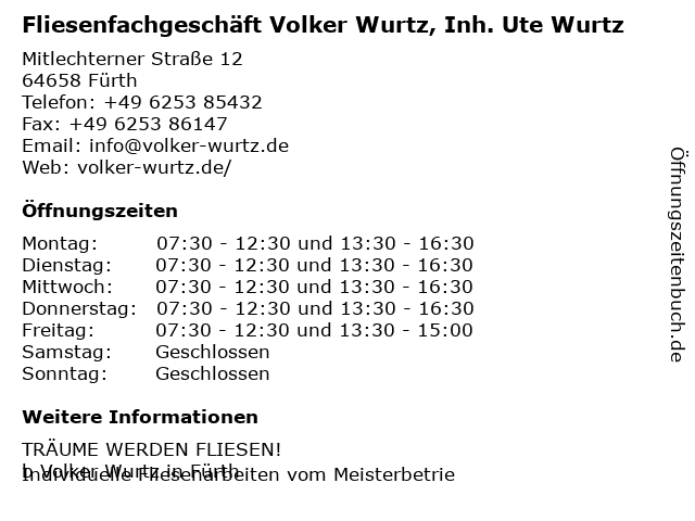 Branchen & Suchbegriffe zu Fliesenfachgeschäft Volker Wurtz, Inh. Ute Wurtz:badsanierung, beratung, estricharbeiten, fassaden, fensterbänke, fliesen, fliesen fürth, fliesenarbeiten, fliesenfachgeschäft, fliesenhandwerk, fliesenleger, fliesenlegermeister, fliesenreparatur, granittreppen, mosaik, service, terrassen, trockenbau, ute, verputzarbeiten, volker, wandgestaltung, wurtz |