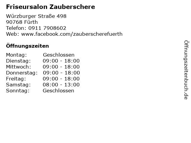 | Öffnungszeiten Friseursalon Zauberschere in Fürth anzeigen | |