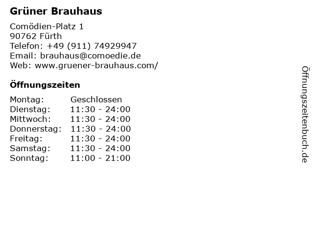 | Öffnungszeiten Grüner Brauhaus in Fürth anzeigen | |