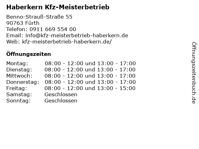 | Öffnungszeiten Haberkern Kfz-Meisterbetrieb in Fürth anzeigen | |