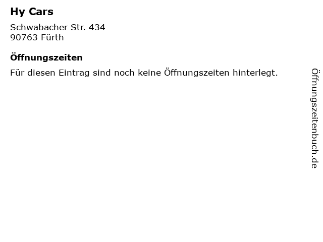 | Öffnungszeiten Hy Cars in Fürth anzeigen | |