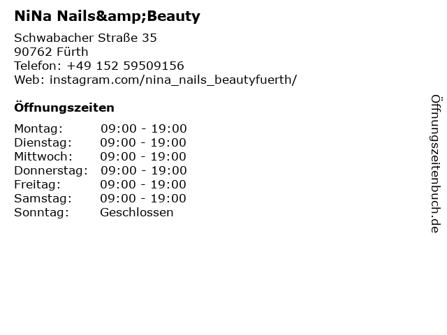Öffnungszeiten NiNa Nails&Beauty in Fürth anzeigen | |