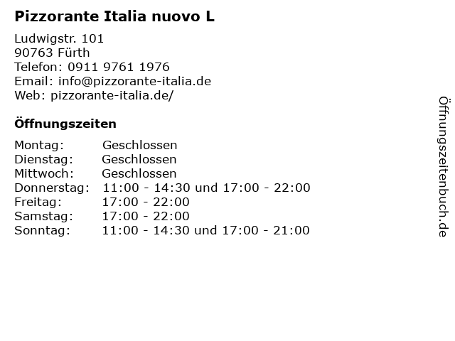 | Adresse Pizzorante Italia nuovo L in Fürth anzeigen |