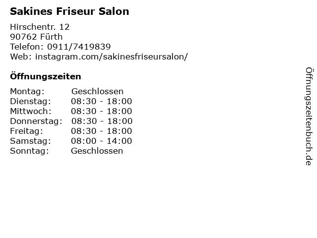 Öffnungszeiten Sakines Friseur Salon in Fürth anzeigen | |