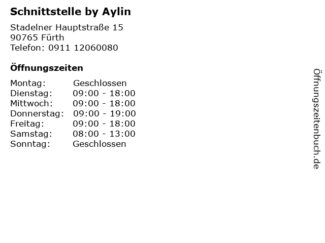 | Öffnungszeiten Schnittstelle by Aylin in Fürth anzeigen | |